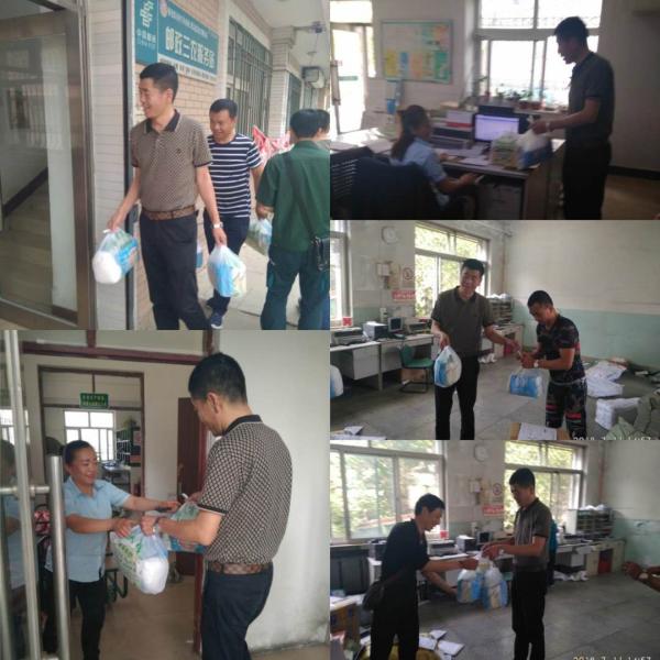 2018年7月20日,雙鴨山市郵政工會時洪軍主席帶領(lǐng)工會相關(guān)人員,冒著夏日炎炎酷暑到基層生產(chǎn)一線開展“關(guān)愛職工夏送清涼”活動,親切地慰問了在高溫下堅守崗位的一線員工,為他們送去了綠豆糕、白糖、礦泉水、毛巾等消暑物品,把公司黨委、行政、工會的關(guān)懷送到一線。慰問組先后來到了市包裹投遞局、網(wǎng)運分揀轉(zhuǎn)運中心、嶺東區(qū)分公司、寶山區(qū)分公司和四方臺區(qū)分公司,時副總經(jīng)理還深入了解員工的生產(chǎn)生活環(huán)境,高溫勞動保護等情況,囑咐員工們在高溫天氣下工作一定要注意做好防暑降溫的自身安全工作。