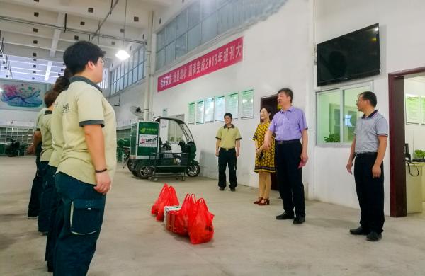 炎炎夏日,驕陽(yáng)似火。7月20日,上饒市分公司總經(jīng)理劉建軍、副總經(jīng)理付結(jié)雄和劉穎蕾先后深入信州區(qū)分公司、網(wǎng)路運(yùn)營(yíng)中心、三江投遞部,親切看望慰問(wèn)堅(jiān)守在高溫下作業(yè)的郵件轉(zhuǎn)運(yùn)及投遞人員,將慰問(wèn)金及西瓜、飲料等防暑降溫慰問(wèn)品送到大家手中,詳細(xì)詢問(wèn)員工的工作生活狀況和身體狀況,并叮囑大家要注意防暑降溫,合理安排作息時(shí)間,確保安全生產(chǎn)。