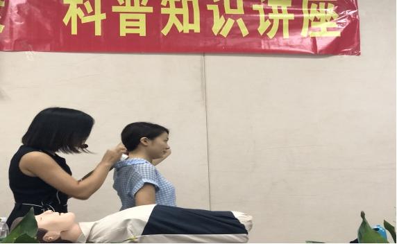 講座一開(kāi)始,雷老師老師就心肺復(fù)蘇的具體操作方法進(jìn)行了講解和示范。查看“患者”意識(shí)、觸摸頸動(dòng)脈、清除呼吸道異物、打開(kāi)氣道、胸外心臟按壓、施行人工呼吸等。隨后繼續(xù)介紹了肩周炎、頸椎病、腰肌勞損等常見(jiàn)辦公室職業(yè)病的預(yù)防知識(shí)。并通過(guò)現(xiàn)場(chǎng)互動(dòng)、實(shí)際操作等形式,使大家較快地掌握了心肺復(fù)蘇的具體操作方法以及經(jīng)絡(luò)穴位定位、常見(jiàn)職業(yè)病預(yù)防等常用技巧和知識(shí)。