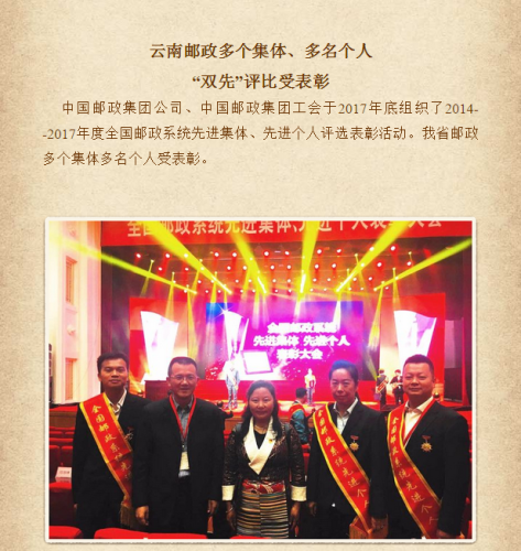 9月20日,集團公司在北京隆重召開表彰大會,表彰獎勵四年來全國郵政系統(tǒng)涌現(xiàn)出的先進集體、先進個人。云南省省分公司資深經(jīng)理、省郵政工會副主席王忠?guī)ш牐?名受表彰先進個人進京參加表彰大會。尼瑪拉木作為勞模代表應(yīng)邀出席表彰大會。