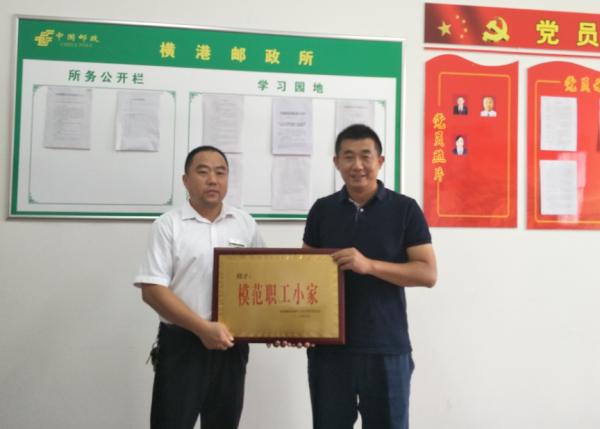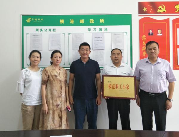 9月13日下午,九江市分公司副總經(jīng)理、工會主席喻剛,工會副主席余茜一行,來到瑞昌市分公司橫港郵政所,為該所榮獲“江西省郵政系統(tǒng)模范職工小家”舉行了授牌儀式。瑞昌分公司總經(jīng)理江訓(xùn)斌,副總經(jīng)理、工會主席姜敏出席授牌儀式。