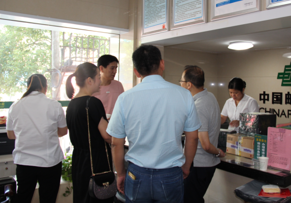 鐘勇一行視察了長平郵政所職工小家和營業(yè)場所,對職工宿舍、食堂的情況都非常滿意。在營業(yè)大廳,鐘勇跟營業(yè)員了解了長平郵政所的包快業(yè)務(wù)發(fā)展情況。