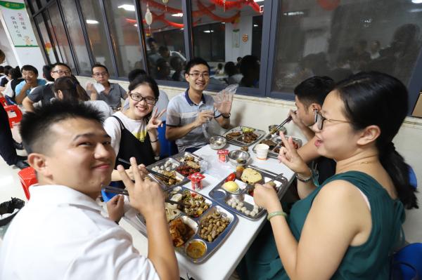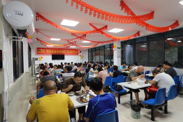 下午下班后,員工們成群結(jié)隊,滿面笑容地走向食堂。食堂張燈結(jié)彩,人聲鼎沸,好不熱鬧!琳瑯滿目的美食令人應接不暇:有瑞金牛肉湯、石城芋餃、寧都肉丸等贛南特色美食;有滋味小龍蝦、鹵味翅膀腳、麻辣香鍋、榴蓮酥、花生豆粑、芋包、薯包等香酥系列美食;有薏米芡實粥、八寶粥、奶黃包等養(yǎng)生美食;有圣女果、香蕉、水果黃瓜、冬棗等水果美食;還有各種飲料……美食品種豐富多彩,讓人眼花繚亂;誘人的香味撲鼻而來,讓人滿口生津。員工們喜氣洋洋,吃著笑著聊著,沉浸在美味的歡樂之中。