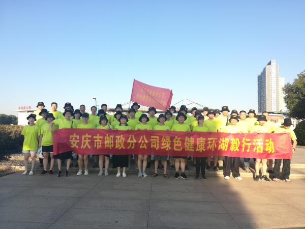 8月29日早上7:00,安慶市郵政工會(huì)組織開展了“綠色健康環(huán)湖毅行”活動(dòng),來自市分公司的近70名員工參加了活動(dòng)。此次活動(dòng)是安慶郵政“綠色郵政”主題系列活動(dòng)之一,大家身著統(tǒng)一的綠色T恤衫,宣傳綠色健康生活理念,展現(xiàn)了安慶郵政員工的綠色文明形象。