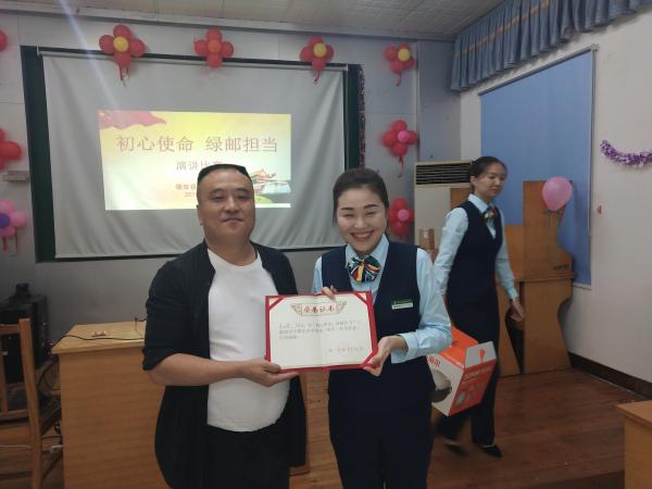 活動(dòng)現(xiàn)場,8名來自一線的年輕同事立足自身崗位,分享對郵政“使命擔(dān)當(dāng)”的理解,用精彩的演講描繪郵政未來藍(lán)圖??h公司領(lǐng)導(dǎo)班子及各部門分支機(jī)構(gòu)負(fù)責(zé)人、縣城網(wǎng)點(diǎn)全體人員觀看了比賽。經(jīng)過激烈的角逐,評選出一、二、三等獎(jiǎng)共4名。