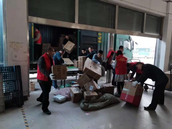 菏澤分公司組織機(jī)關(guān)人員裝卸“雙十一”郵件