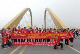 郵儲銀行佛山市分行為了創(chuàng)新企業(yè)員工文體活動形式,不斷把全民健身活動引向深入,讓廣大員工既享受體育運(yùn)動的樂趣,感受體育運(yùn)動的魅力,營造一種文明健康的生活方式,佛山市分行組織140多名員工參加了市政府組織的50公里徒步健身活動。我行員工個(gè)個(gè)志氣高漲、精神飽滿、闊步向前,大家的臉上都洋溢著健康的笑容,沿著徒步路線前行,統(tǒng)一穿印有我行Logo的服裝和舉標(biāo)有我行標(biāo)志的橫幅,向群眾宣傳我行的品牌形象。50公里徒步活動,能走完全程那絕對是毅力和體力的考驗(yàn),雖然很多同志并沒有走完全程,但大家一直堅(jiān)持著,用自己最大的正能量,展現(xiàn)佛山郵儲人的精神和毅力。最終走完50公里的員工有16人,他們的毅力和堅(jiān)持值得我們學(xué)習(xí)。