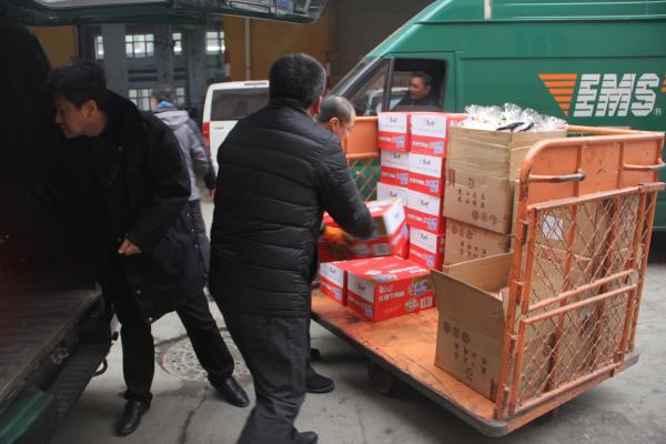 11月15日,正是“雙十一”郵件進出口高峰,早上9:00點,市分公司總經(jīng)理李剛,副總經(jīng)理兼工會主席魏亞峰帶領(lǐng)綜合辦公室、工會相關(guān)人員來到寄遞事業(yè)部和運營管理部(網(wǎng)路運營中心),慰問看望奮戰(zhàn)在這里的郵運和投遞一線的干部員工,給他們送去了方便面、火腿腸、面包、速凍餃子等第一批慰問品。向員工們表達了省公司和市分公司領(lǐng)導(dǎo)的關(guān)心與問候。