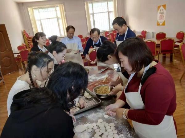 在熱熱鬧鬧的食堂里,大家都各顯伸手,有揉面的、有搟皮的、有負(fù)責(zé)包的,忙得不易樂乎。人多力量大,一個(gè)多小時(shí)的時(shí)間2000多個(gè)餃子就包好了。為了能讓員工吃的可口,特意包了酸菜陷和芹菜陷的蒸餃和水餃。剛包完餃子,轉(zhuǎn)運(yùn)車進(jìn)來了,孫立春總經(jīng)理領(lǐng)導(dǎo)班子成員一行又去了工作場(chǎng)地。