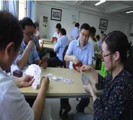 六安市分行員工熱烈響應,大家踴躍報名,近30 余對員工參加了比賽,通過抽簽進行淘汰。他們信心滿滿,臉上洋溢著歡快的笑容,比賽在愉快祥和的氣氛中進行。在規(guī)定的時間內(nèi),參賽搭檔通力合作、默契配合,充分施展自己的牌技,斗智斗勇。牌局比分你追我趕,有遙遙領先又馬失前蹄的,也有開局不利后來居上的,但無論勝負,大家均是喜笑顏開,觀戰(zhàn)者也是其樂融融。經(jīng)過5 輪較量,共計3 對選手分獲一、二、三等獎。