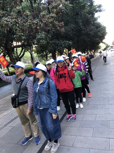 為做好組織工作,工會(huì)擬定了詳盡的活動(dòng)方案,對(duì)徒步線(xiàn)路作了合理的規(guī)劃,對(duì)行進(jìn)途中如何開(kāi)展宣傳作了安排,下發(fā)了印制著社會(huì)主義核心價(jià)值觀(guān)的手持小旗。活動(dòng)當(dāng)日,大家早早來(lái)到集合點(diǎn)整裝待發(fā),在長(zhǎng)約7公里的徒步路上,職工們或交流生活或拍照留影,個(gè)個(gè)倍感興奮。抬頭仰望碧藍(lán)的天空,做個(gè)深呼吸清醒的空氣洗去了工作的辛勞,人人精神抖擻。一路自然的景致,深深觸動(dòng)了職工們對(duì)大自然的向往和熱愛(ài),臉上洋溢著快樂(lè)的笑容。