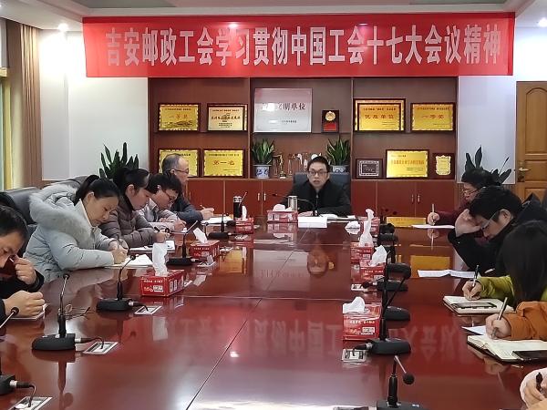 會議結(jié)束后,市公司工會組織了員工參加市總工會開展的“中國工會十七大精神有獎知識問答”活動,充分體現(xiàn)吉安郵政切實把學習貫徹習近平總書記重要講話和中國工會十七大精神轉(zhuǎn)化為實際行動,更有力的推動吉安郵政工會工作創(chuàng)新扎實發(fā)展。(江西省郵政工會)