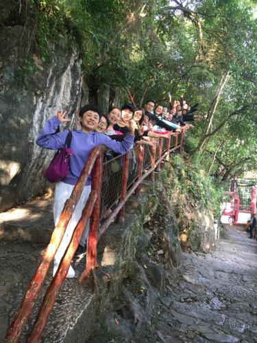 參加活動的干部職工早早在指定地點集合,興奮地合影留念后,迫不及待朝著目的地——西華山三元洞頂峰攀登。此時的西華山身披朝霞,涼風習習,空氣清新,風光無限。山下,古木參天,曲徑通幽;通往山上的石徑曲折而險峻,樓臺亭閣懸掛在陡峭的山崖上,沿途茂密的樹林、纏繞的古藤條,石縫中頑強生長的花草、以及透過斑駁樹葉流動的晨曦光影,吸引著大家駐足觀望,面對撲面而來自然美景,一路盡情享受這天然氧吧和大自然的滋養(yǎng)。一路觀景、拉家常、談養(yǎng)生,歡聲笑語不斷,不時舉起手機拍照留影,發(fā)朋友圈,其樂融融。
