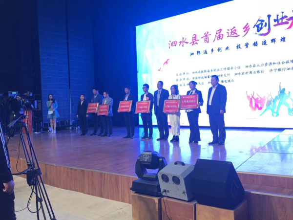 近日,由泗水縣支行和泗水縣人社局聯(lián)合主辦的首屆“返鄉(xiāng)創(chuàng)業(yè)大賽”決賽在廣電大樓一樓演播廳舉辦。市人社局就業(yè)辦公室主任伊成厚、縣政府副縣長孔繁華、縣人社局局長董繼華、泗水支行行長張洪龍及縣扶持返鄉(xiāng)創(chuàng)業(yè)領導小組成員單位相關負責同志、各鎮(zhèn)街、經(jīng)濟開發(fā)區(qū)相關部門、企業(yè)負責人參加此次返鄉(xiāng)創(chuàng)業(yè)大賽決賽。