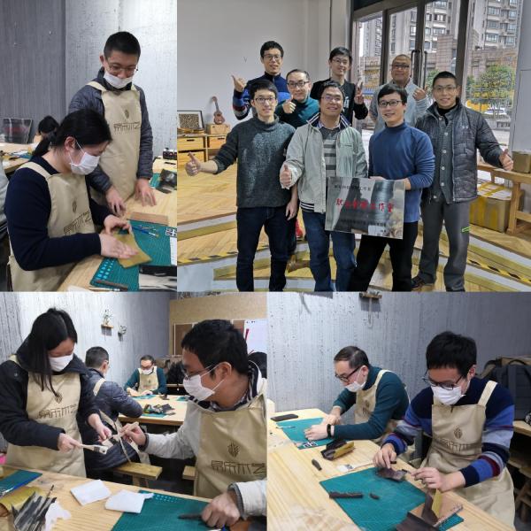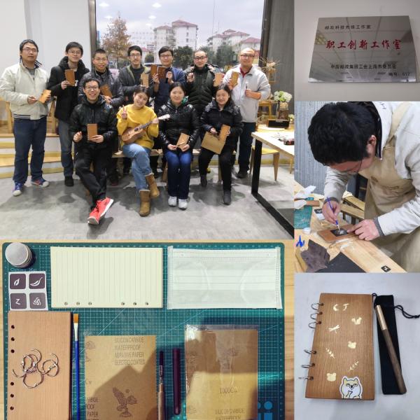 創(chuàng)新工作室的同志們興致盎然,耐心地聽(tīng)了工具介紹和操作要點(diǎn)講解后,迫不及待地穿上工作圍裙,個(gè)個(gè)躍躍欲試:在專業(yè)指導(dǎo)下,對(duì)木材料進(jìn)行打磨、上蠟、拼接、粘合、燙金......每組結(jié)對(duì)師徒還不忘動(dòng)手合作,忙得不亦樂(lè)乎,仿佛重現(xiàn)創(chuàng)新工作室一派熱火朝天的工作場(chǎng)景。大家度過(guò)了一個(gè)輕松愉快的下午,暫時(shí)告別局內(nèi)工作室的忙碌和代碼,在做中學(xué),在學(xué)中收獲,在收獲中享受快樂(lè),把愛(ài)融入木作,制作出專屬自己的小作品——匠心鋼筆和思如泉涌筆記本。