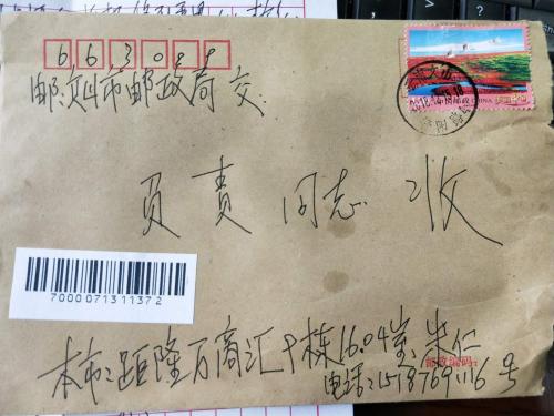 近日,文山州分公司營(yíng)業(yè)局收到一封來自文山市炬龍萬商匯一位78歲名叫朱仁的老同志寫來的表揚(yáng)信,信封背面寫著“多年來的服務(wù),非常感動(dòng)”,簡(jiǎn)短的幾個(gè)字表達(dá)了老人對(duì)郵政投遞員的感謝和敬意。