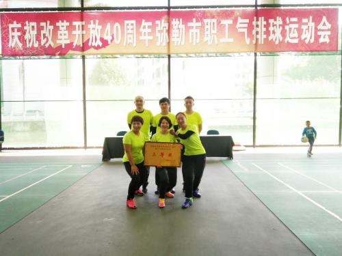 彌勒分公司為了加強(qiáng)與各單位的溝通聯(lián)系,鍛煉隊(duì)伍,展示企業(yè)形象,組隊(duì)參加全市職工氣排球運(yùn)動(dòng)會(huì)。在比賽中,敢打敢拼、團(tuán)結(jié)拼搏、從不氣餒。在場(chǎng)外,互相溝通交流,切磋攻防技巧,場(chǎng)上是對(duì)手、場(chǎng)下是朋友。經(jīng)過(guò)3天的激烈角逐,取得了第七名的好成績(jī)。