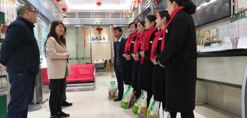 1月26日周六,省分公司副總經(jīng)理、工會(huì)史永芳主席一行前往臨滄市分公司開(kāi)展節(jié)前慰問(wèn)工作,為一線(xiàn)網(wǎng)點(diǎn)決勝一季度開(kāi)門(mén)紅增勢(shì)提氣。