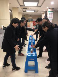 第二個游戲就是群龍取水,每組參賽者靠著自己的智慧都取到了礦泉水,然后通過取水時間來分名次。
