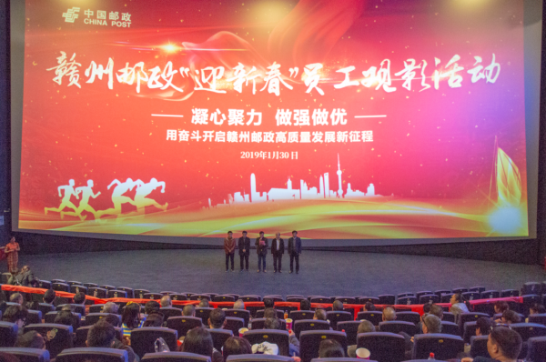 “身為郵政員工,我感到很幸福?!?019年1月30日晚,贛州市郵政工會(huì)在CGV影院IMAX廳舉行了員工春節(jié)團(tuán)拜暨觀影活動(dòng)。來(lái)自各個(gè)單位部門工會(huì)的300多名員工齊聚一堂,共度喜慶祥和的美好時(shí)光。