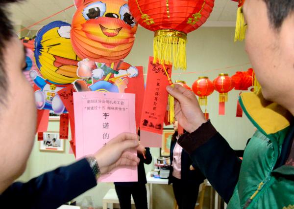 2月18日,北京郵政朝陽區(qū)分公司工會開展了迎元宵趣味猜燈謎活動,活動吸引了眾多職工的積極參與。為了增強元宵佳節(jié)的喜慶氣氛,增進郵政員工的感情溝通, 此次迎元宵趣味猜燈謎活動,工會精心收集了100條燈謎,內(nèi)容涵蓋文化、歷史、地理、藝術(shù)、日常生活以及黨建知識、工會知識、郵政工作等內(nèi)容,除了字謎外,還有成語謎、地名謎、人物謎、醫(yī)藥謎等,內(nèi)容豐富,既具娛樂性,又具知識性。 活動開始后,大家踴躍猜謎,認(rèn)真琢磨,你一言、我一語,互相提示和討論,活動現(xiàn)場歡聲笑語不斷?;顒咏Y(jié)束后,大家高興地說著參與活動的感受“非常喜歡工會搞的這個活動,我已經(jīng)猜對好幾個燈謎了,多年不用的腦筋‘復(fù)活’了,感受到了濃重的節(jié)日氛圍,希望企業(yè)多搞些文體活動?!?迎元宵趣味猜燈謎活動為郵政員工營造了溫馨、歡樂、祥和的節(jié)日氛圍,受到大家的一致好評。活動激發(fā)了大家參加工會活動的積極性,為凝聚力量,豐富郵政員工業(yè)余文化生活起到了積極的推動作用。(北京郵政工會)