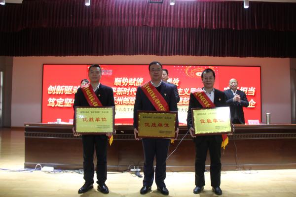 會(huì)議首先對(duì)2018年度撫州郵政“品質(zhì)發(fā)展杯”勞動(dòng)競(jìng)賽優(yōu)勝單位、“平安郵政·安全生產(chǎn)”勞動(dòng)競(jìng)賽獎(jiǎng)、“爭(zhēng)先進(jìn)位”優(yōu)勝單位進(jìn)行了表彰。芮義標(biāo)副總經(jīng)理宣讀表彰決定,市分公司領(lǐng)導(dǎo)為獲獎(jiǎng)單位頒了獎(jiǎng)。