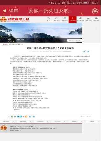 2月26日下午,全國先進女職工集體和個人表彰大會在人民大會堂隆重舉行。會上,全國工會系統(tǒng)10個集體榮獲全國五一巾幗獎狀,10名個人榮獲全國五一巾幗獎?wù)拢?00個集體獲“全國五一巾幗標(biāo)兵崗”稱號,300名個人獲“全國五一巾幗標(biāo)兵”稱號。其中,安徽10個集體獲“全國五一巾幗標(biāo)兵崗”稱號,10名個人獲“全國五一巾幗標(biāo)兵”稱號。合肥郵區(qū)中心局郵件處理中心函件班榮獲“全國五一巾幗標(biāo)兵崗”稱號。