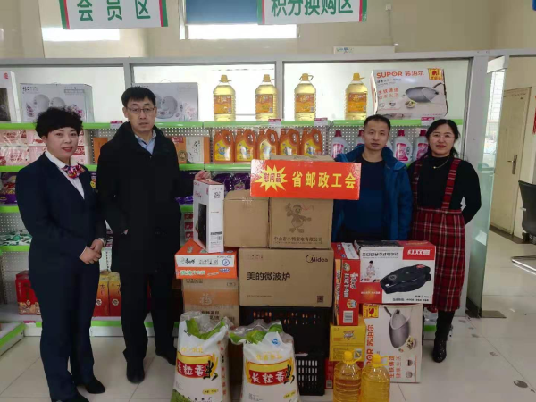 齊市郵政工會(huì)積極行動(dòng),大力宣傳獲獎(jiǎng)網(wǎng)點(diǎn)取得的成績(jī),要求各基層工會(huì)必須專款專用為獲獎(jiǎng)網(wǎng)點(diǎn)購(gòu)買經(jīng)濟(jì)實(shí)用的食品、物品?;鶎痈飨嚓P(guān)單位領(lǐng)導(dǎo)高度重視,帶領(lǐng)導(dǎo)相關(guān)人員組成慰問(wèn)小組,前往網(wǎng)點(diǎn)開(kāi)展慰問(wèn)活動(dòng),為網(wǎng)點(diǎn)送去了豆油、大米、水果等食品和微波爐等物品。慰問(wèn)組在網(wǎng)點(diǎn)看望了忙碌的柜員,向職工辛勤的付出表示問(wèn)候和謝意。慰問(wèn)組通過(guò)和網(wǎng)點(diǎn)支局長(zhǎng)、理財(cái)經(jīng)理交談,了解網(wǎng)點(diǎn)產(chǎn)品和激勵(lì)政策,對(duì)前階段工作取得的成績(jī)給予肯定,并向她們表示祝賀,同時(shí)也轉(zhuǎn)達(dá)了省分公司、省郵政工會(huì)領(lǐng)導(dǎo)對(duì)一線員工的關(guān)愛(ài)。