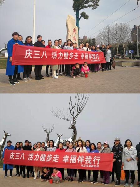 為慶?!叭恕眿D女節(jié),豐富廣大女職工的業(yè)余生活,堅(jiān)持快樂(lè)工作,健康生活的理念,全面提升職工身體素質(zhì),打造“文明、健康、快樂(lè)”的企業(yè)氛圍,展現(xiàn)企業(yè)良好精神風(fēng)貌,今天下午,許昌市分公司組織女職工齊聚許昌鹿鳴湖畔,共同參加“慶三八活力健步走 幸福伴我行”活動(dòng)。