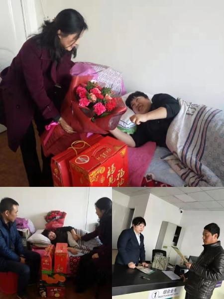 得知她生病的情況后,3月8日下午,綏化市郵政分公司副總經(jīng)理、工會(huì)主席王明明帶領(lǐng)工會(huì)人員前去看望,為她送去了鮮花和慰問(wèn)金。王總對(duì)許立平的敬業(yè)精神給予肯定,對(duì)她在化肥銷售中做出的貢獻(xiàn)表示贊揚(yáng),對(duì)家屬支持郵政事業(yè)表示感謝,對(duì)身體恢復(fù)保養(yǎng)進(jìn)行叮囑,囑咐她安心養(yǎng)病,爭(zhēng)取早日康復(fù)。