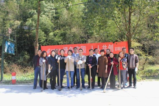 到達目的地后,大家就熱火朝天的干起來了,植樹現(xiàn)場,熱鬧非凡,有的挖坑,有的搬樹苗,有的埋土,雖然平時大家都很少干這種體力活,特別是女同志還是有點吃力,但都沒有一個叫苦叫累,植樹過程中大家還紛紛向當(dāng)?shù)卮迕窳私馑矘涿绲纳L周期和特性及存活的環(huán)境等,活動在大家的一片歡聲笑語中如火如荼的進行著………