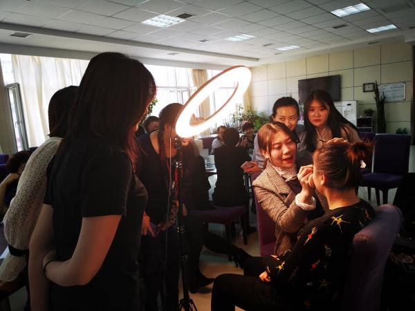 化妝培訓圍繞“化妝技巧”、“個人服飾色彩搭配”等幾個方面進行講解。培訓老師通過現(xiàn)場模特化妝演示,為大家講解化妝品的正確使用方法以及不同膚色、不同臉型的化妝技巧等,贏得了現(xiàn)場觀眾的熱烈好評。講座結束后,女職工們熱情不減,紛紛向老師請教眉筆、口紅顏色的選擇等問題,老師熱情的幫助女職工們逐一解答。