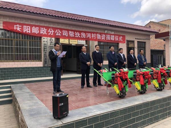 甘肅慶陽(yáng)分公司、市郵政工會(huì)積極開(kāi)展幫扶工作,4月9日,慶陽(yáng)市分公司黨委書(shū)記、總經(jīng)理柴建榮,紀(jì)委書(shū)記、副總經(jīng)理賈炯和市局工會(huì)等部門(mén)負(fù)責(zé)同志一行來(lái)到結(jié)對(duì)幫扶貧困村,正寧縣永和鎮(zhèn)房和村,為該村捐贈(zèng)辦公椅20把,玉米播種機(jī)5臺(tái)。