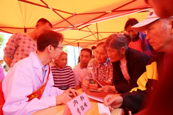 在簡短的啟動(dòng)儀式之后,“郵愛健康扶貧義診”活動(dòng)正式開始。在寫有“綠色使命、綠郵擔(dān)當(dāng)”的遮陽傘下,江西省中醫(yī)藥大學(xué)附屬醫(yī)院的11名醫(yī)生和護(hù)師組成的醫(yī)護(hù)志愿者服務(wù)隊(duì)依次排開,父老鄉(xiāng)親有序?qū)めt(yī)問診。醫(yī)生們認(rèn)真聆聽每一位患者的病情陳述、詳細(xì)詢問他們的生活習(xí)慣,對(duì)患者咨詢的疾病防治和健康保健等問題進(jìn)行了耐心細(xì)致地講解,為下一步科學(xué)治療提供了良好的就醫(yī)方案,對(duì)村民們常見病、多發(fā)病的防控和常用藥品的服用以及日常保健等方面的知識(shí)進(jìn)行了答應(yīng)解惑和現(xiàn)場指導(dǎo)?;顒?dòng)現(xiàn)場,醫(yī)護(hù)志愿者服務(wù)隊(duì)還為老百姓提供了免費(fèi)的常用藥品。