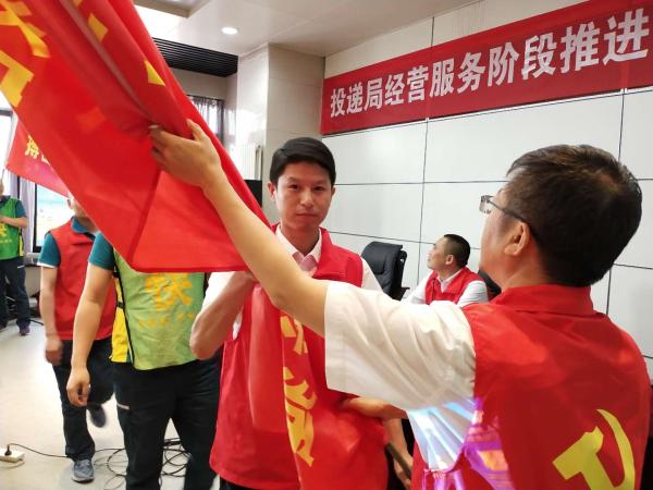 投遞局楊濤經(jīng)理為五個(gè)保障組授旗,并授王莉主任“2019投遞局櫻桃攬收戰(zhàn)區(qū)”大旗,王莉主任帶領(lǐng)投遞局所有參會(huì)人員進(jìn)行宣誓。大家激情飽滿,斗志盎然,樹立必勝信心,誓奪櫻桃寄遞戰(zhàn)役全面勝利。
