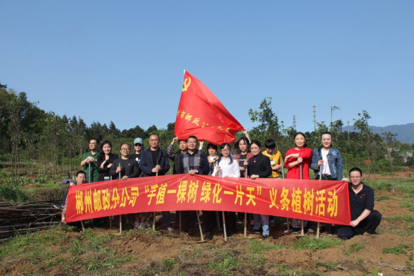 春回大地,萬物復(fù)蘇,郴州市分公司為落實集團公司綠色郵政建設(shè)行動,為營造系統(tǒng)綠色環(huán)保氛圍也為倡導(dǎo)郵政員工生態(tài)文明理念。2019年4月17日下午,工會組織機關(guān)部分員工進行植樹活動,積極響應(yīng)省公司“手植一棵樹 綠化一片天”的活動號召,市分公司副總經(jīng)理李軍、副總經(jīng)理周建湘親臨現(xiàn)場。簡要集合并進行安全事項講解之后,植樹活動有序進行,大家分工明確、默契配合,揮舞鋤頭翻新土,扶植新苗列成行,完成植樹任務(wù)200株。一片新綠賦予大地生命,分公司員工親近自然、保護環(huán)境,完美詮釋了保護生態(tài)、和諧共存的美好理念。(湖南省郵政工會)