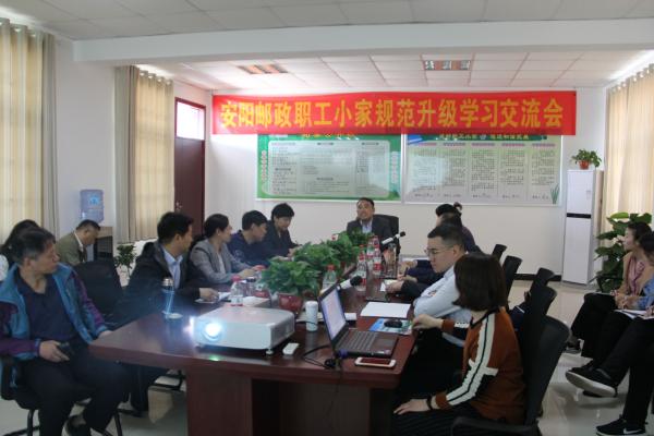 近日,安陽(yáng)市郵政工會(huì)在滑縣半坡店支局召開(kāi)了全市農(nóng)村郵政支局職工小家規(guī)范升級(jí)學(xué)習(xí)交流會(huì)。各縣(市)郵政工會(huì)主席、副主席、工會(huì)干事共20余人參加了會(huì)議。
