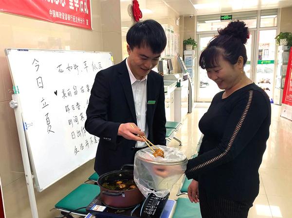 當(dāng)天清晨,該支局員工們親自動(dòng)手,洗雞蛋、放茶葉、煮雞蛋一氣呵成,兩個(gè)小時(shí)后,香氣撲人的茶葉蛋已準(zhǔn)備好。營(yíng)業(yè)網(wǎng)點(diǎn)開(kāi)門(mén)后,員工們將茶葉蛋送到每一位前來(lái)辦理業(yè)務(wù)的客戶手中,并送上立夏日吃雞蛋可以祈禱夏日平安等祝福。收到雞蛋和祝福的客戶們都對(duì)郵政的服務(wù)贊不絕口。