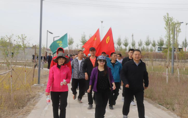 為確保此次徒步活動順利開展,市分公司調(diào)配2輛后勤車,并準(zhǔn)備了應(yīng)急藥品和時令水果、面包等補給。徒步隊伍從市分公司家屬院出發(fā),沿迎賓路、黃河路、西藏路、柴達(dá)木路、市圖書館,最后到達(dá)目的地濕地公園南門,全程大約9公里。一路上春和景明,艷陽高照,綠樹掩映,徒步其中令人心曠神怡。飄揚的旗幟和員工們洋溢的笑臉組成了一道美麗的風(fēng)景線。