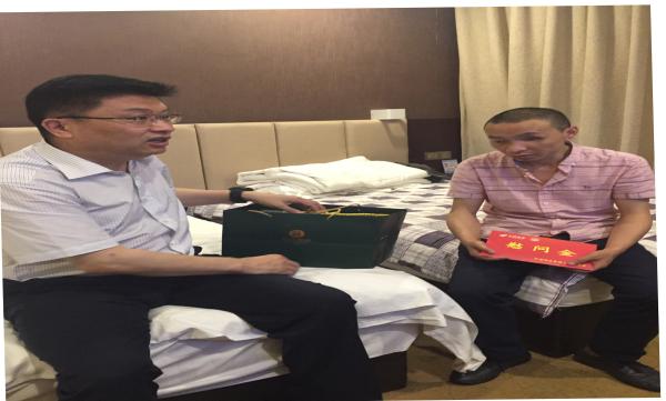 四川省甘孜藏族自治州郵政局康定郵運(yùn)分局押運(yùn)員邱宇同志2001年在執(zhí)行康定至甘孜的郵運(yùn)任務(wù)時(shí),突遇4名持槍歹徒,為保護(hù)郵件他被歹徒用子彈擊傷,現(xiàn)已雙目失明。5月9日應(yīng)中央電視臺(tái)邀請來京錄制“等著我”系列節(jié)目。谷主席一行代表集團(tuán)公司黨組、集團(tuán)工會(huì)對邱宇同志表示慰問,送去慰問金和慰問食品。谷主席在談話中充分肯定了他為中國郵政做出了突出貢獻(xiàn),同時(shí)詢問了他的家庭狀況和生活情況,希望邱宇同志要堅(jiān)強(qiáng)的對面人生,健康生活。邱宇同志對集團(tuán)公司黨組和集團(tuán)工會(huì)的關(guān)懷表示衷心感謝,并表示今后要走出困惑、堅(jiān)定信心、快樂的生活。