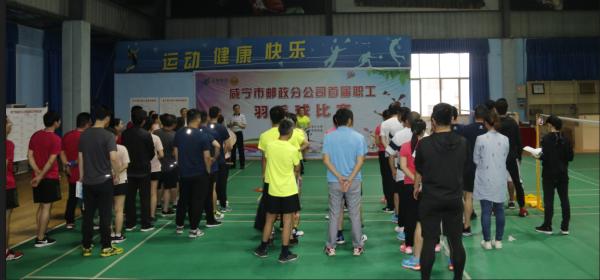為進(jìn)一步豐富職工文體活動,落實(shí)人人都有一個流汗項(xiàng)目,增強(qiáng)團(tuán)隊(duì)協(xié)作精神,5月17日,咸寧市郵政分公司首屆職工羽毛球比賽在咸寧地質(zhì)隊(duì)羽毛球館隆重舉行。比賽項(xiàng)目共分為男子單打、女子單打等2個項(xiàng)目,共有8支代表,60余名運(yùn)動員及教練員參加比賽。