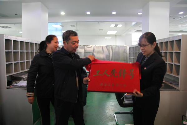 五一”國(guó)際勞動(dòng)節(jié),黑龍江省總工會(huì)召開慶?!拔逡弧眹?guó)際勞動(dòng)節(jié)暨表彰先進(jìn)大會(huì),此次獲獎(jiǎng)名單中,中國(guó)郵政集團(tuán)公司黑河市分公司寄遞事業(yè)部投遞班獲評(píng)2018年度黑龍江省“工人先鋒號(hào)”榮譽(yù)稱號(hào)。8日上午,黑河市分公司在郵件投遞分揀場(chǎng)地內(nèi)舉行了揭牌儀式,市分公司黨委書記、總經(jīng)理劉劍波,工會(huì)主席、副總經(jīng)理關(guān)春艷出席揭牌儀式。