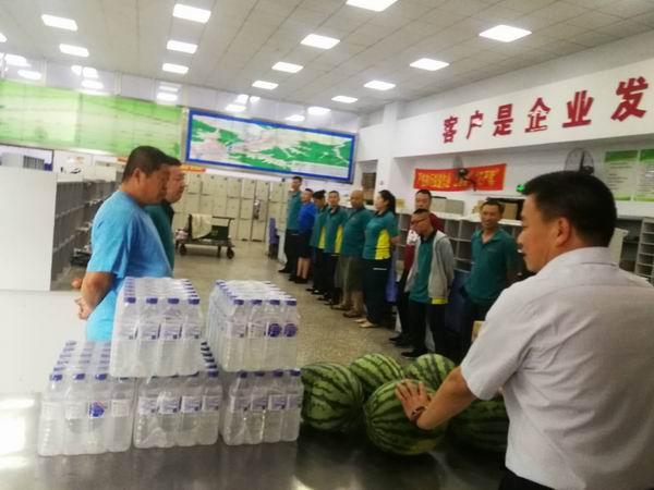 通化市分公司副總經(jīng)理、工會主席吳立新與工會副主席蘇江清組成慰問組,來到寄遞事業(yè)部生產(chǎn)場地,為一線員工送去了西瓜、雪糕、礦泉水等解暑降溫的慰問品,給不畏高溫酷暑,仍然堅守在生產(chǎn)崗位的廣大員工送去夏日的清涼,也送去了企業(yè)對一線員工的體恤與關(guān)懷。吳立新要求全地區(qū)各級基層工會組織與工會小組,全面開展“夏送清涼”活動。特別是要認(rèn)真做好高溫天氣下外勤職工的勞動保護(hù)工作,切實維護(hù)廣大職工的職業(yè)安全與健康權(quán)益,確保廣大職工平安度夏。(吉林郵政工會)