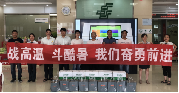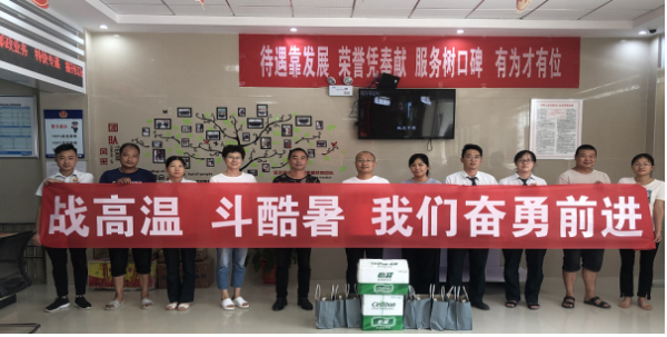 為切實關愛夏季高溫期間全市郵政職工身心健康與生命安全,確保廣大職工度過一個清涼的盛夏。7月25日,天門分公司朱先進總經(jīng)理、蔡彬副總經(jīng)理、曾屹峰副總經(jīng)理兵分三路,頂著炎炎烈日、滾滾熱浪,分別慰問了奮戰(zhàn)在高溫下的一線職工,為他們送去防暑降溫用品,帶去了市分公司黨委的深深關懷與濃濃厚愛。