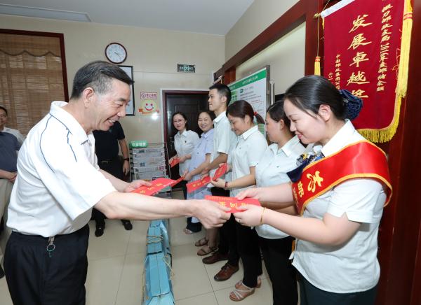 8月6日下午,魯先彪副總經(jīng)理一行來到城區(qū)分公司掇刀支局進行慰問,與高溫下戰(zhàn)斗在一線的員工親切交談,表達深切的關(guān)懷,并為在場的所有員工送上慰問金及防溫降暑物質(zhì)。魯總與掇刀支局經(jīng)理親切交談,詳細了解了掇刀支局員工生產(chǎn)、生活條件及支局業(yè)務(wù)發(fā)展現(xiàn)狀,對掇刀支局取得的2019年新增綜合資產(chǎn)全省排名第三的成績,給予了充分的肯定。并指出:當(dāng)前,郵政金融發(fā)展遇到瓶頸,希望掇刀支局攻堅克難,積極進行探索,為全省找到走出困境的好方法、好思路;同時,要求掇刀支局堅定不移抓好轉(zhuǎn)型工作,轉(zhuǎn)變思路積極抓好源頭獲客,扎實做好基礎(chǔ)客戶拓展工作等。