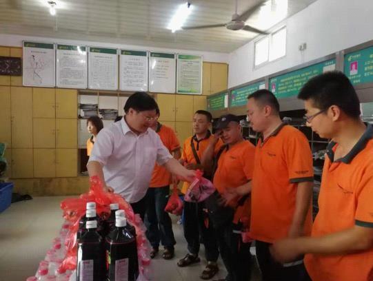 7月26日,新洲區(qū)分公司總經(jīng)理程德軍、工會(huì)主席周立平、包裹快遞部一行人員來到區(qū)分公司投遞站以及邾城攬投部,殷切慰問高溫酷暑下仍堅(jiān)守崗位的外勤人員,慰問過程中領(lǐng)導(dǎo)班子詳細(xì)詢問了投遞員們工作和生活情況,并不斷囑咐員工們一定要?jiǎng)谝萁Y(jié)合,照顧好自己的身體,注意自身安全。同時(shí),特別要求要合理調(diào)整和安排員工工作班次及作息時(shí)間,避免員工長時(shí)間高溫作業(yè),防止中暑。還現(xiàn)場為大家送上人丹、風(fēng)油精、酸梅湯、藿香正氣水和礦泉水等防暑降溫用品。
