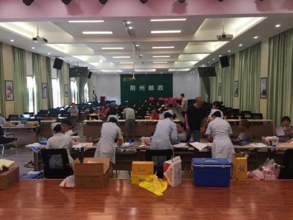 一滴熱血,一份愛心。無償獻血顯大愛,齊心互助暖人間。8月16日上午,由荊州市郵政工會組織的無償獻血活動在一樓會議大廳進行,來自市分公司本部、荊州區(qū)、沙市區(qū)的42名員工踴躍參加了此次獻血活動。