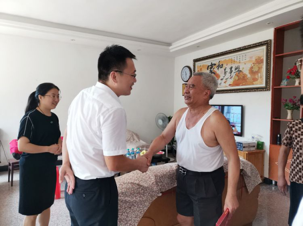 隨后,盧東一行來到退休職工徐光輝父親家中,為92歲高齡的徐老送去了慰問和祝福,并囑咐徐老保重身體,樂享晚年。(江西省郵政工會)