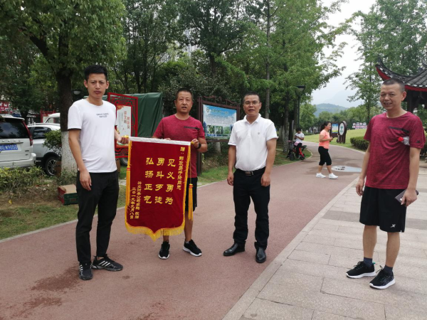 9月11日上午,張家界郵政工會正在張家界新外灘碼頭舉行“慶祝建國70周年張家界有郵政職工趣味運(yùn)動會”,比賽現(xiàn)場熱鬧非凡。此時(shí),一位男子,舉著一面錦旗朝著運(yùn)動會現(xiàn)場趕來,突如其來的一幕,讓大家驚嘆不已。