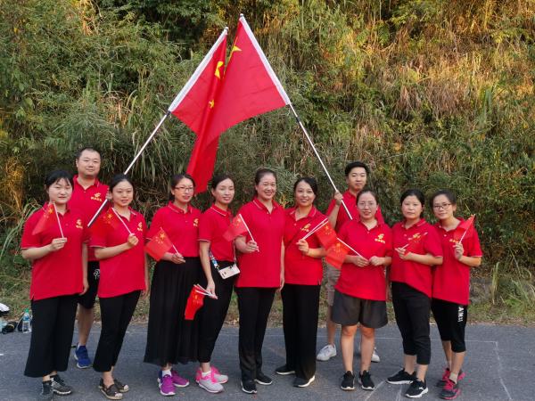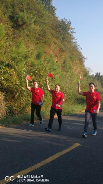 當天下午15點,報名參加的員工統(tǒng)一坐大巴前往仰天崗國家森林公園,森林公園里群山起伏,林木蔥郁,是新余名副其實的城市后花園和綠色生態(tài)屏障,被譽為“城市綠肺”和“天然氧吧”。從龍盤隧道登山口開始,大家興致盎然,一路上說說笑笑,一邊欣賞著優(yōu)美的風景,一邊分享著各自的喜悅。登上山頂后,大家依序排成“70”隊形,揮動手中的紅旗,大聲歌唱《我和我的祖國》。